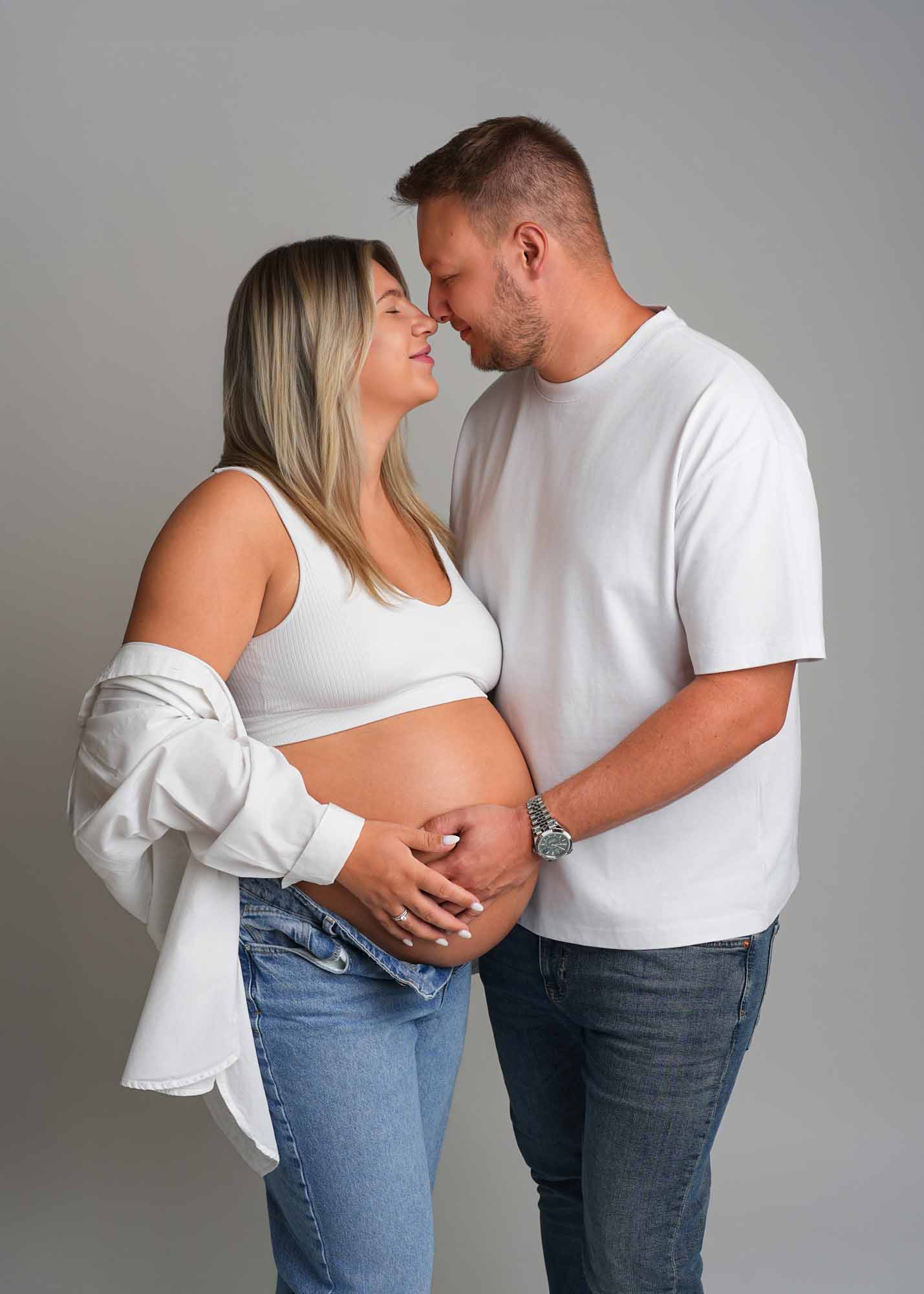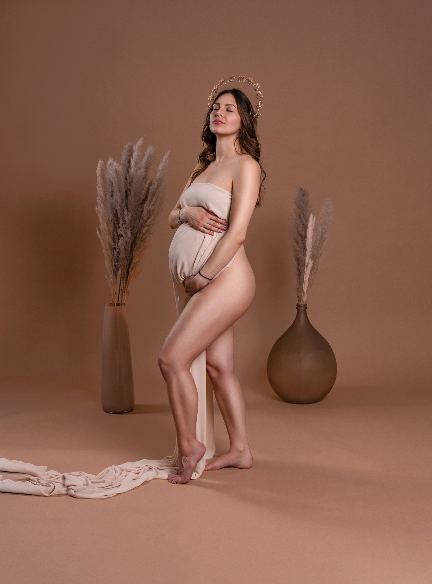 Unser Fotostudio bietet dir eine entspannte Wohlfühlatmosphäre mit sanftem Licht und stilvollem Setdesign. So entstehen emotionale und authentische Bilder, die deine Schwangerschaft auf natürliche Weise widerspiegeln.